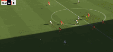 第35分钟,阿古梅右路传中,伊萨克-罗梅罗无人盯防迎球推射,竟然将球踢呲。