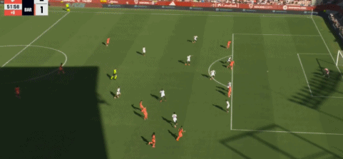 伤停补时第6分钟,佩德里送出长传,拉什福德后点凌空推射破门,打进西甲处子球,巴萨扳回一城,1-2!