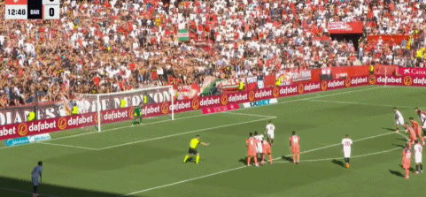 第13分钟,桑切斯操刀命中,攻破昔日老东家的球门,塞维利亚打破僵局,1-0!