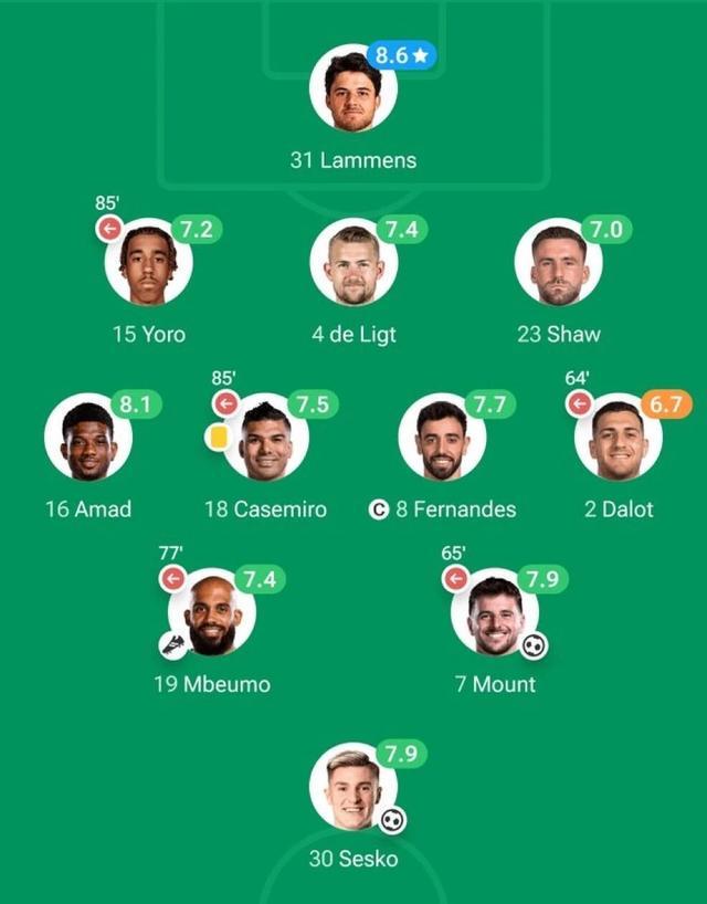 本场比赛,阿莫林的球队迅速进入状态。梅森·芒特在一次精彩的团队配合后破门得分,为球队首开纪录。而这也是芒特加盟球队2年多以来,首次在梦剧场收获英超主场进球。随后,谢什科接到达洛特的长传手抛球后抢点破门,连续2场比赛进球,同时也是首个主场进球。