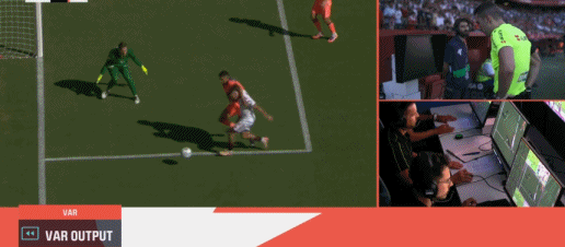 第90+4分钟,裁判向佩克-费尔南德斯出示红牌,VAR介入后改判黄牌