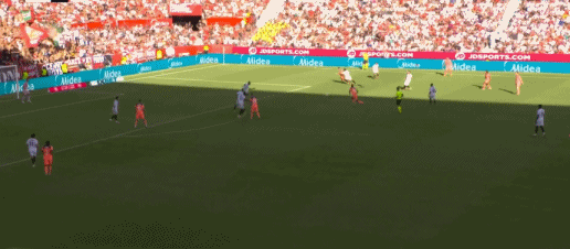 第90分钟,何塞-安赫尔禁区右侧低射破门!塞维利亚3-1巴萨