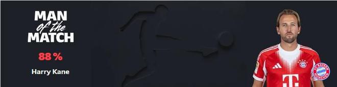 帽子戏法,凯恩当选霍芬海姆vs拜仁全场最佳球员